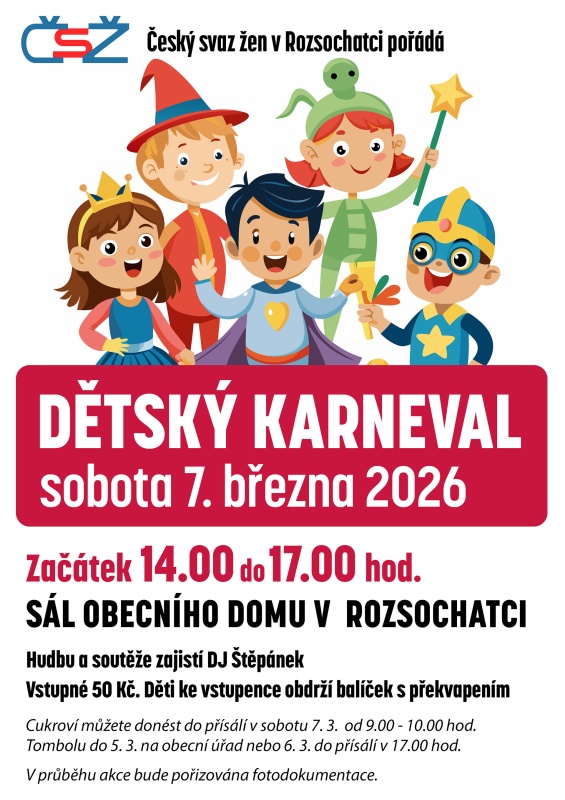 Hudbu a soutěže zajistí DJ Štěpánek. Vstupné 50 Kč. Děti ke vstupence obdrží balíček s překvapením.