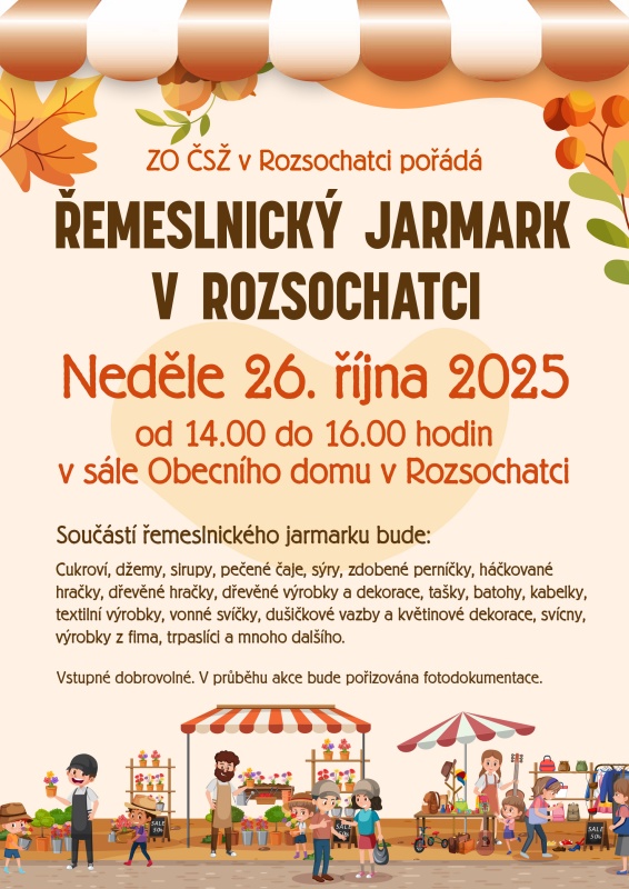 od 14.00 do 16.00 hodin v sále Obecního domu v Rozsochatci.